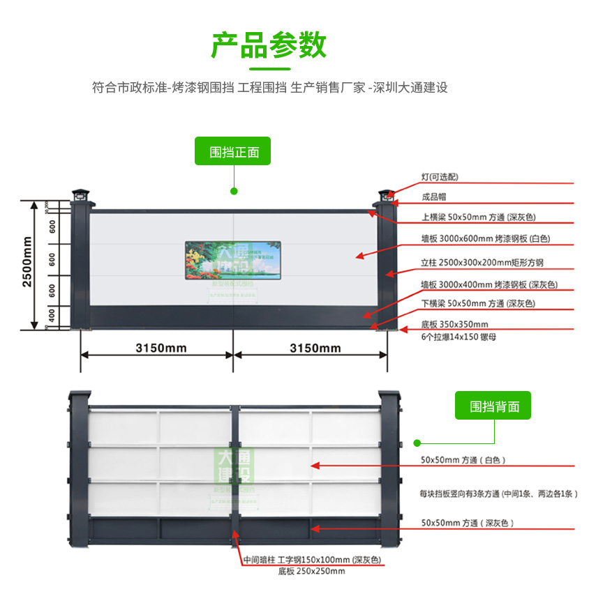 深圳裝配式鋼結構圍擋烤漆半龍骨A款 市政標準 廠家直銷-產品介紹